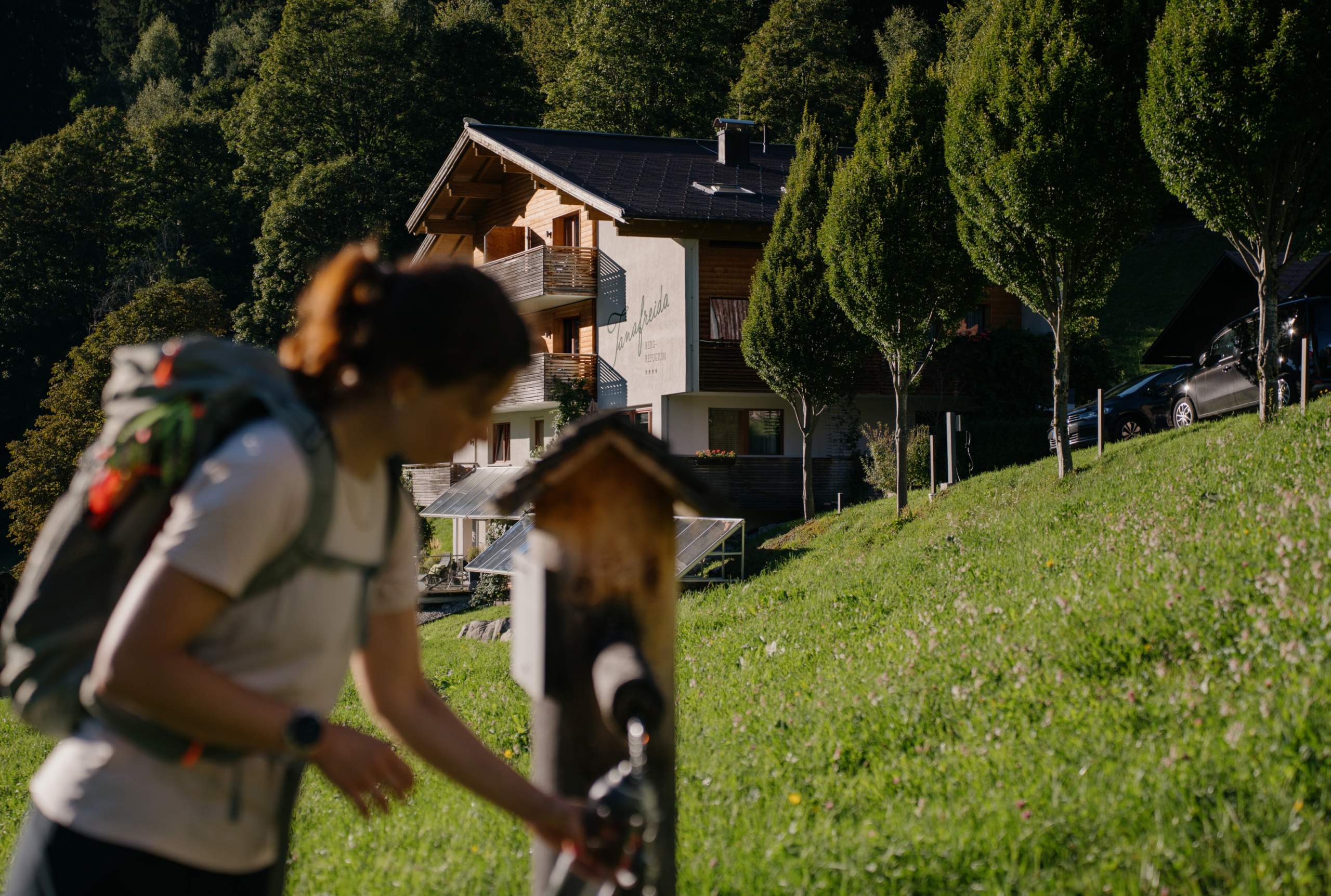 Ein Natururlaub in den Alpen beginnt im Tanafreida, unserer nachhaltigen Ferienwohnung mit Sauna in Vorarlberg. Der perfekte Ausgangspunkt für alle, die gerne draußen unterwegs sind: Wanderwege und traumhafte Touren starten direkt vor der Haustür – ganz ohne Auto und ohne Stress. Einfach losgehen, tief durchatmen und die beeindruckende Bergwelt genießen.